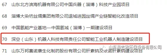 海吉雅环保与上海迪贝机器人科技有限公司共同投资深空(山东)机器人科技有限责任公司的智能工业机器人制造项目,同时列入省重大项目名单。